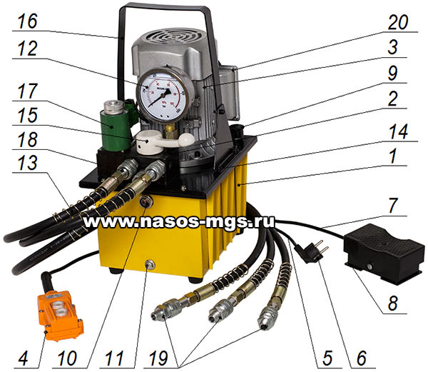 Педаль 8 при можно заменить на кнопочный пульт управления 4 (пульт в стандартную комплектацию не входит).
